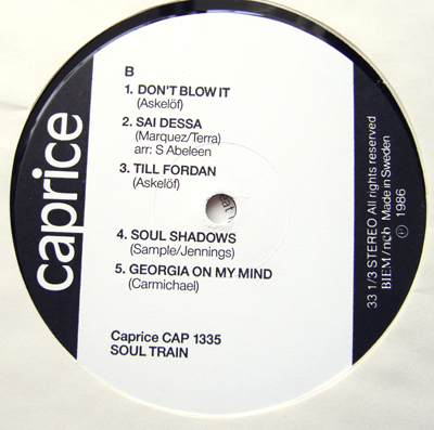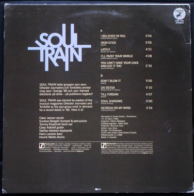 スウェーデンの7人組グループ、ソウル・トレイン。名前からして、ソウルフルなサウンドを予想させますが、予想外(?)にも、すっきりしたサウンド。AOR~ジャズ・フュージョン~サンバ風味な曲が収録されています。ジョー・サンプルの哀愁ナンバー [ SOUL SHADOWS ] のカバー収録。